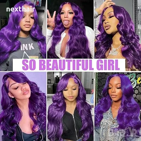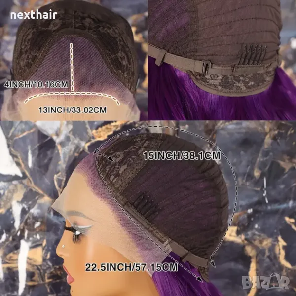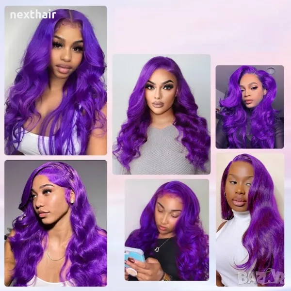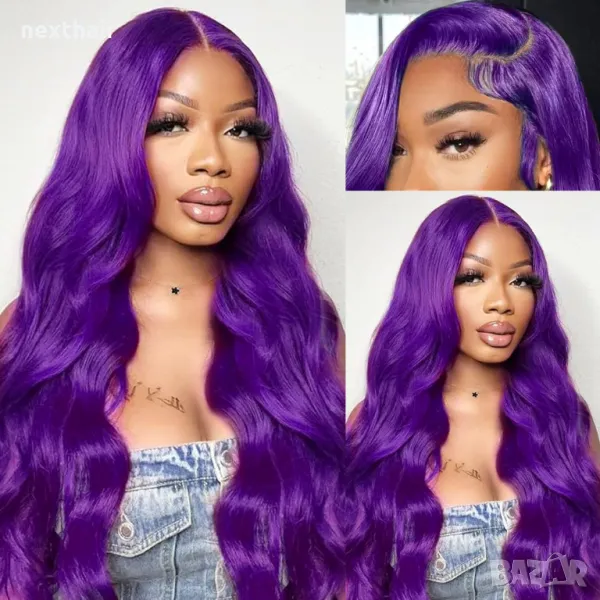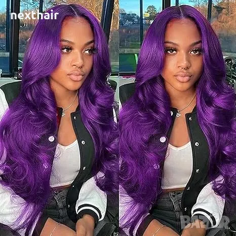 Лилава лейс фронт перука на вълни с дантела → Обява 48008574