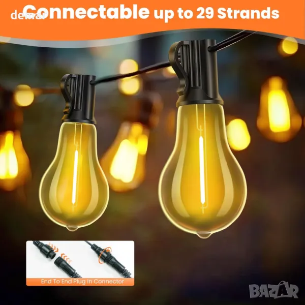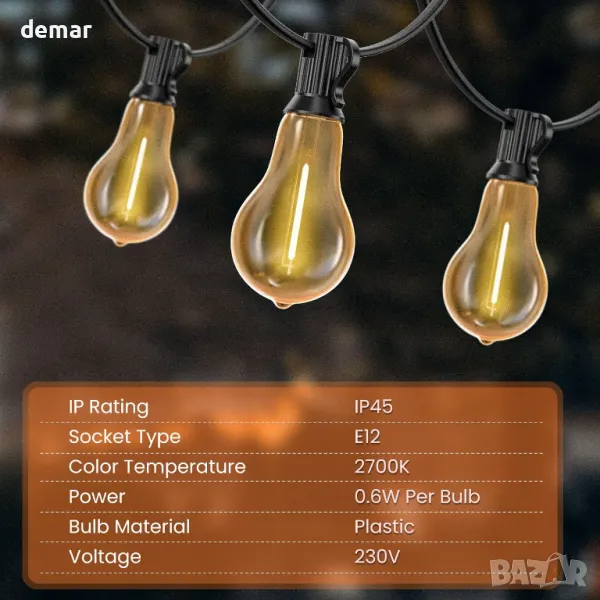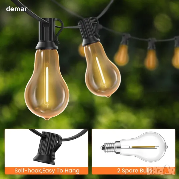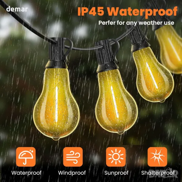 15-метровите външни LED нишки с 26 издръжливи, нечупливи крушки в ретро стил (1 резервна) предлагат 2700K топла светлина за създаване на уютна атмосфера. Създадени да издържат на сурово време с водоустойчиви PET материали, те са идеални за вътрешни дворове, градини, сватби или партита. Лесни за инсталиране с отвори за окачване, тези универсални светлини могат да свържат множество струни за омагьосващо сияние.