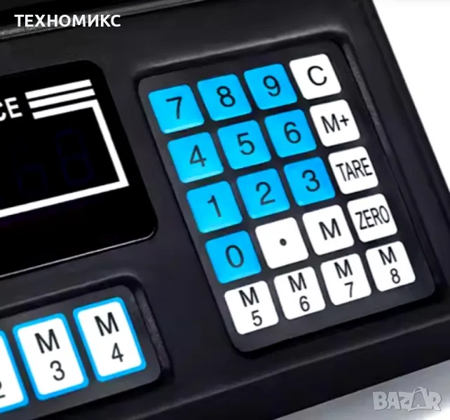Дисплей: LED с три отделения за тегло, единична цена и обща цена;