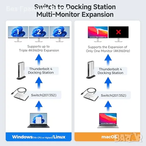 Съвместимост: Работи с USB-C и Thunderbolt 4 устройства, включително популярни монитори и докинг станции.