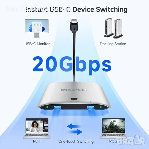 Мощен USB4 превключвател за 2 компютъра: Споделяне на USB-C монитор или Thunderbolt 4 станция с мигновено превключване.
