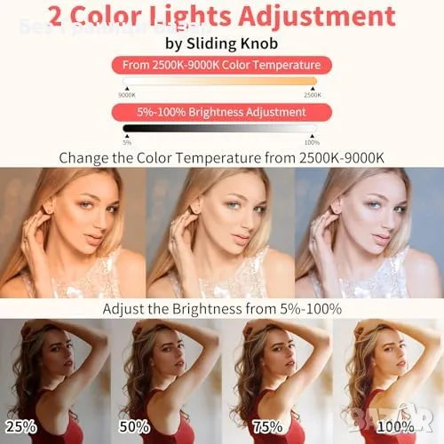 Регулируема яркост и цветова температура – 2500K-9000K с CRI ≥ 95.