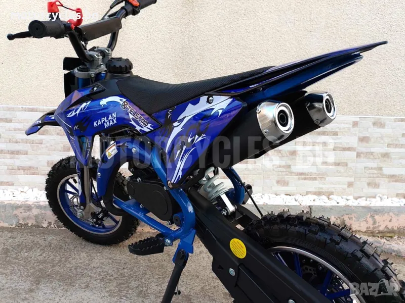 НОВО ! ! ! Детски кросов мотор 49 Модел 2025г. / KAPLAN MAX 49CC с добавена функция " Лесен старт" Подходящо за деца от 4 до 9 годишна възраст Двигател 49CC , едноцилиндров, 2 тактов Полезна информация- как се приготвя горивната смес за двутактов двигател: смесват се 1000ml бензин с двутактово масло 25 ml.