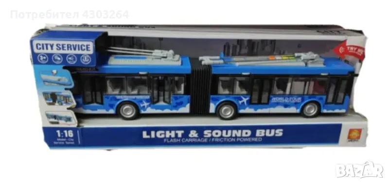 Фрикционен тролейбус с отварящи се врати, звуци и светлини 44см
