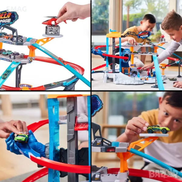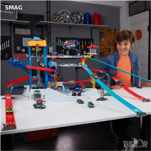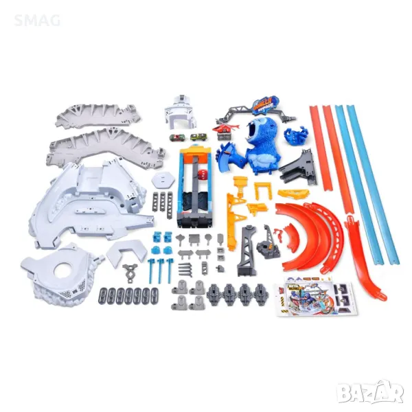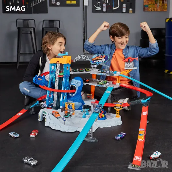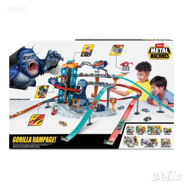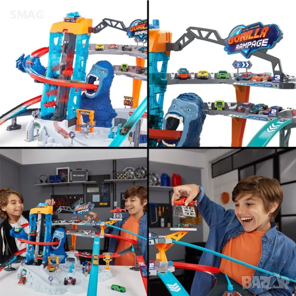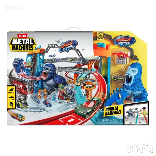 Гигантска пътека с обща дължина 5,4 м, която завършва в устата на горилата. Съдържа две коли за начало на забавлението. Ще можете ли да се прицелите правилно?