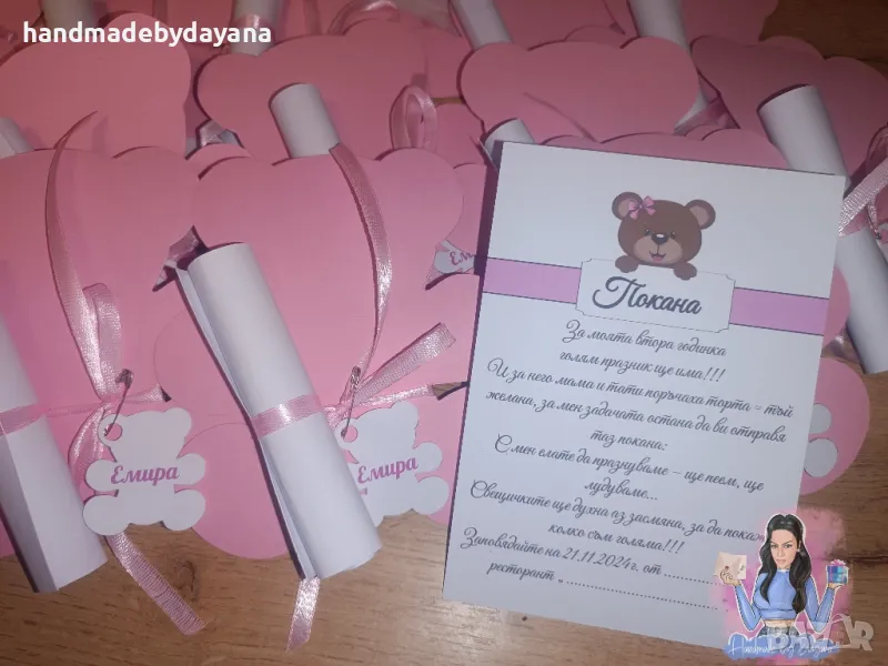 Покани за рожден ден - мече в розово , снимка 1 - Покани - 48012361 Покани за рожден ден - мече в розово , снимка 2 - Покани - 48012361 1/2