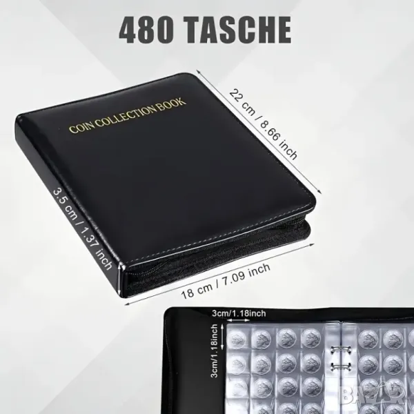 класьор за 480 броя монети до 30 мм. - Екокожа с цип → Обява 48012947