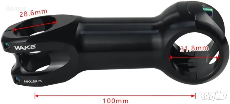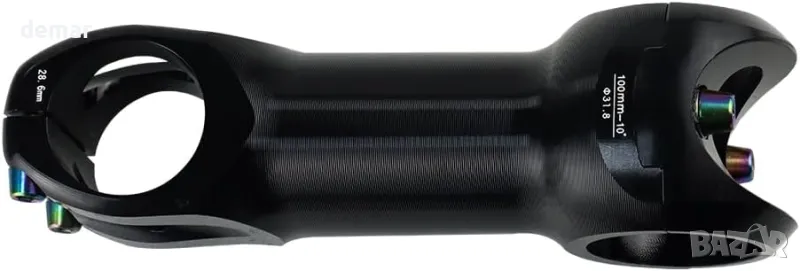 Това стебло на кормилото е с диаметър 31,8 mm със съвместимост с стебло на вилица 28,6 mm, ъгъл -10° и дължина 100 mm. Изработен от издръжлива, но лека алуминиева сплав 7075 с прецизна CNC изработка, той предлага както здравина, така и естетическа привлекателност. Лесен за инсталиране със сигурна скоба с четири болта, той осигурява комфортно возене, като намалява напрежението върху ръцете, раменете и гърба. Подходящ за широка гама велосипеди, включително шосейни, планински, спускащи се, пистови, BMX и MTB, той е идеален за надстройки, модификации или замяна.