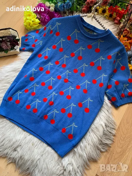 Син екип/комплект плетиво с череши → Обява 48013756