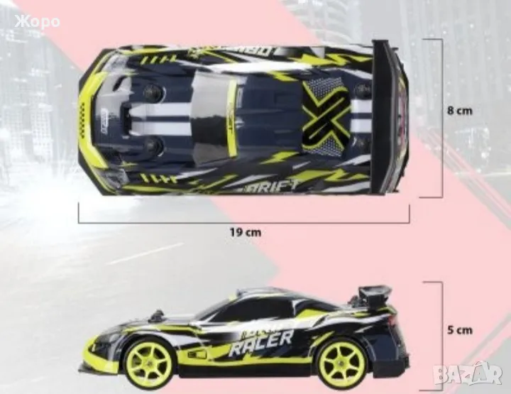 ✔️Детска състезателна кола с дистанционно с пълни функции напред, назад, стоп, завой наляво и надясно, светещи фарове.