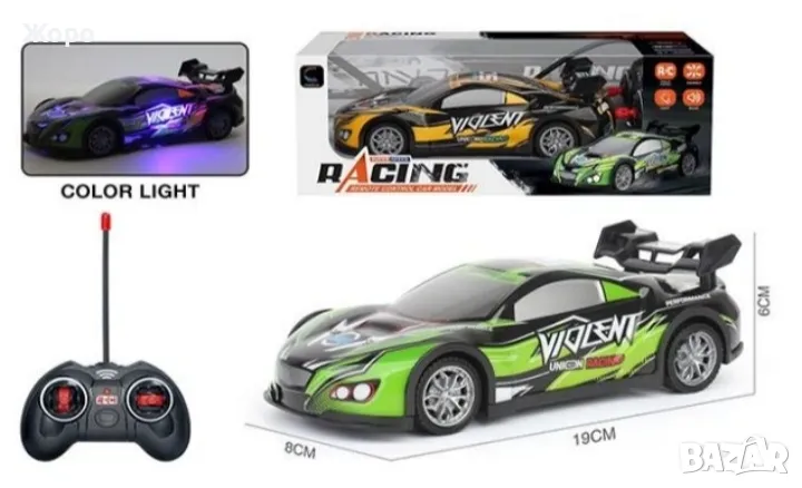В комплектът са включени кола и дистанционно.