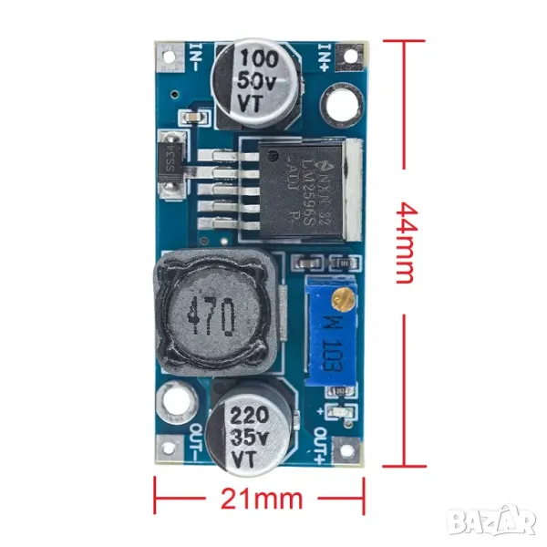 на изходното напрежение е от DC 1,25 V до 35V, а ефективността е 92%.