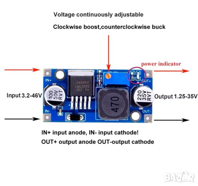 Диапазона на входното напрежение е от DC 3,2 V до 46V. Входното