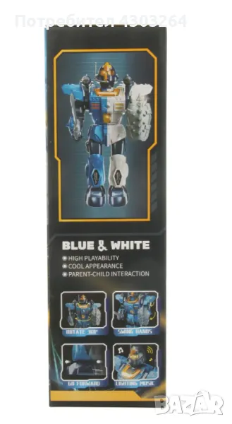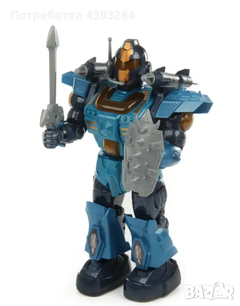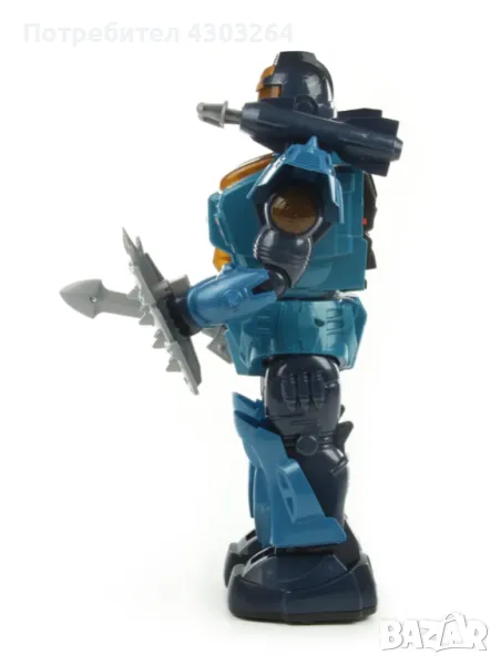 Играчката робот може да изстрелва снаряди, осветяването на различни елементи ви позволява да играете с робота на тъмно. Захранваният с батерии робот е изработен от здрави и издръжливи материали.