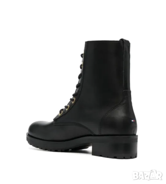 черна телешка кожа, къс страничен цип, закопчаване с връзки отпред, заоблени пръсти, 40 мм нисък ток