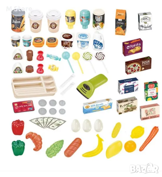 Време е за пазаруване! Комплект за игра Детски супермаркет. Перфектен подарък за ролеви игри. Играта развива въображението и креативността и учи на социални взаимодействия.