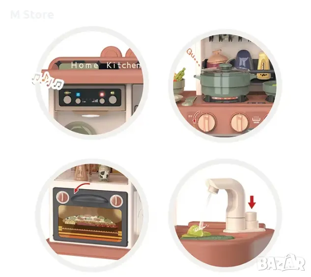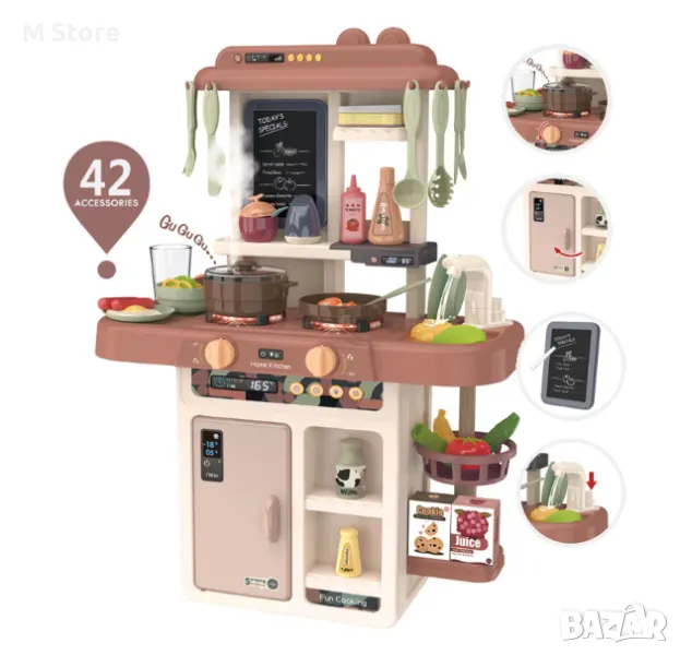 Представяме Ви една от любимите играчки на всички малчугани - детска кухня с мивка с воден кръг, хладилник, печка, табло за бележки, плодове, зеленчуци, множество аксесоари. Страхотен подарък за всяко дете. Само за 89 лв