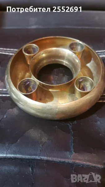 Месингов свещник - четворка. Диаметър- 13,5см. Височина-4см.