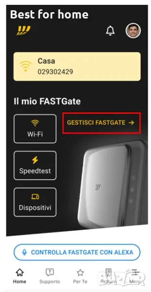Можете да управлявате конфигурациите на вашия FASTGate и връзката Fastweb директно от приложението MyFastweb.
