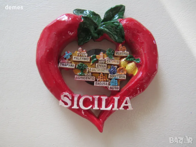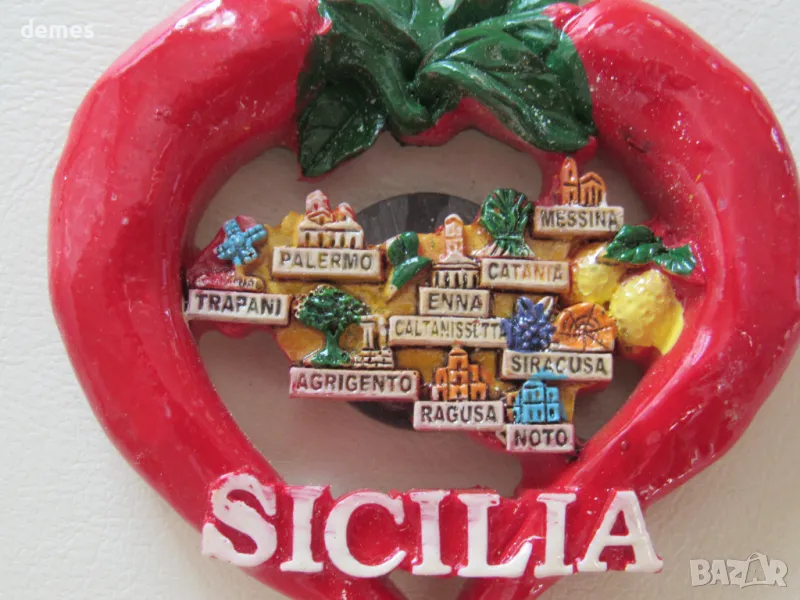 Със символа на Сицилия трискелион – древен гръцки символ на три бягащи крака, излизащи от една точка.