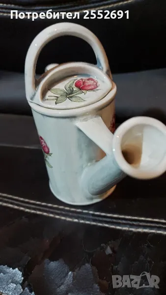 Винтидж керамична малка лейка "swineside Teapottery" , изрисувана и с позлата. Височина- 15см . Дължина-19см. Диаметър на основата- 7см. MADE IN ENGLAND. Наличие на маркировка.