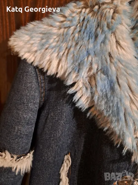 Дънково палтенце, уникално красиво, Размер М, но подплатата му е дебела. Дължина 63 см. ГО 100 см. талия 94 см. ханш 114 см. ръкав (бицепс) 34см. За подплатата трябва поне с 5 - 6 см. да махнете. Липсва едно копче най- отгоре.