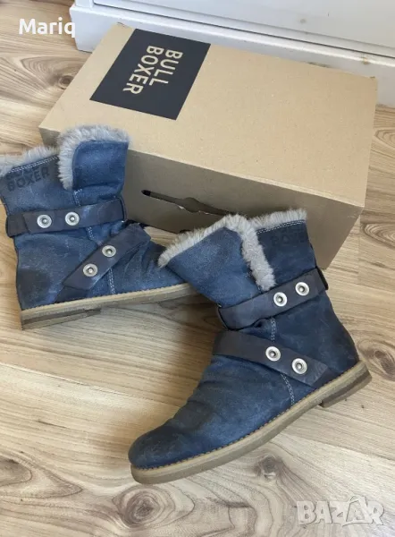 Сини боти за момиче BullBoxer. Номер 35, дължина на стелка 23см. От естествена кожа . Обувани 2-3пъти. Като нови , без забележка .