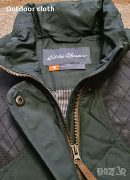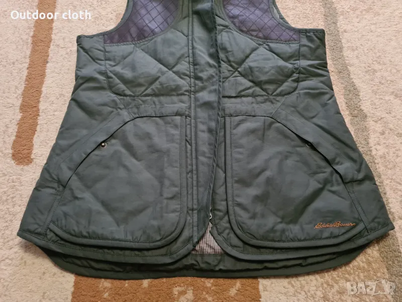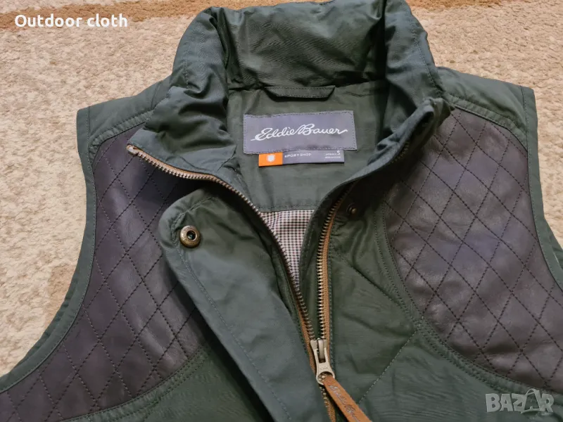 Супер качествен елек на топ бранда за outdoor екипировка Eddie bauer. Направен от здрава,сравнително мека материя,с елементи от естествена кожа, и пълнеж от естествен пух(не е обемен).Има няколко джоба, включително и голям на гърба.