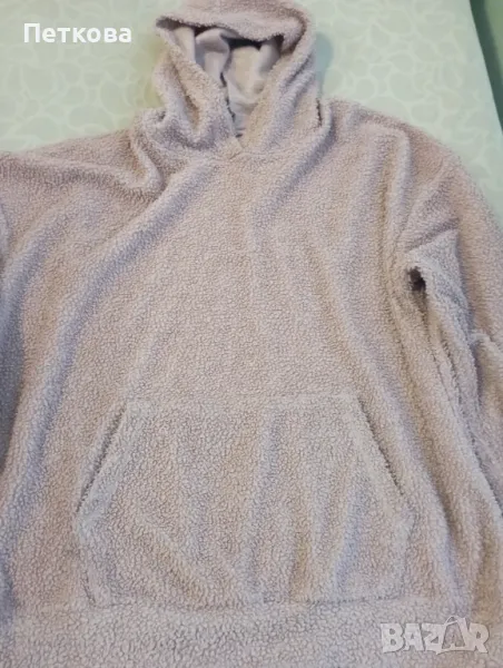 Почти нов и много запазен мек блузон. Универсален размер, цвят пепел от рози. С качулка и голям джоб отпред. Идеален като допълнение на всеки тоалет, може да се носи и като връхна дреха.