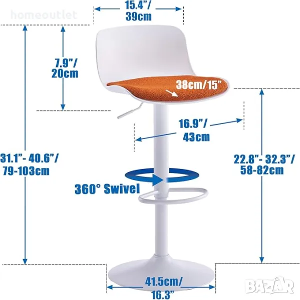 Висококачествени бар столове с регулируема височина, к-т от 2бр EUYY102-KS-1909WH-OR → Обява 48021556