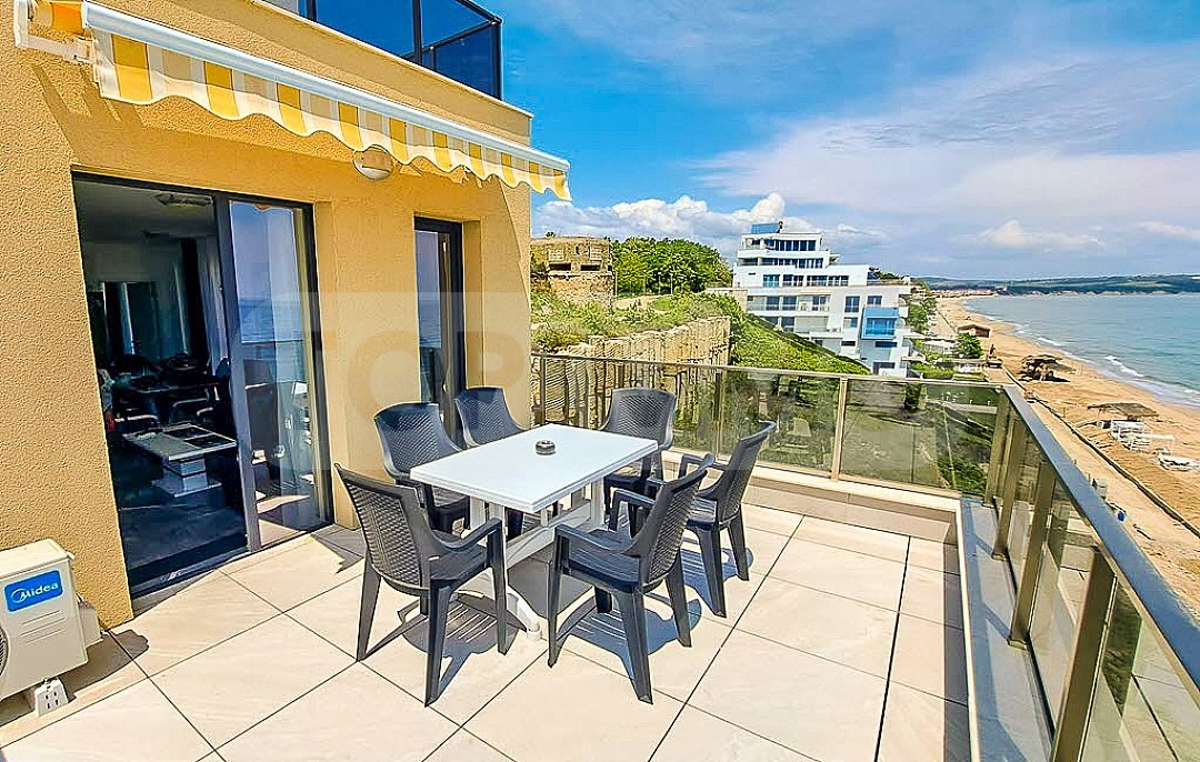 ТОПИММО предлага за продажба тристаен апартамент в затворен комплекс, който е разположен на първа линия море, до самия плаж в град