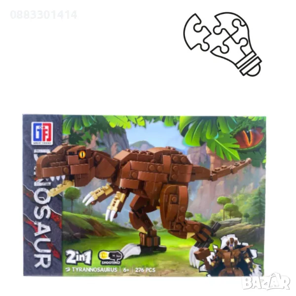 Конструкторът "Dinosaur 2в1" с 276 части предлага възможност за сглобяване на два различни модела: динозавър и други животни или предмети, в зависимост от креативността на строителя.