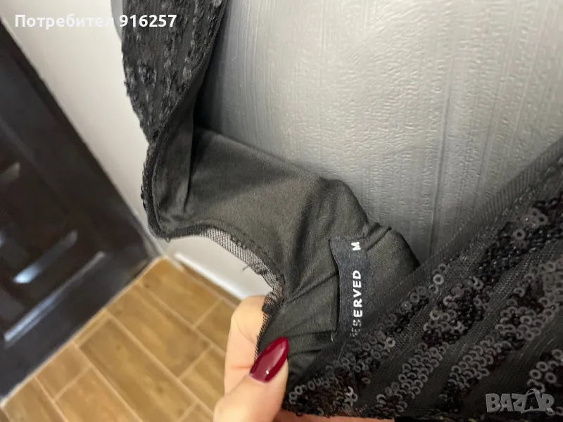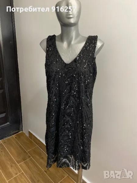 Парти рокля цялата в пайети . Размер М на марката Reserved, дължина 90 см , гръдна 48 см едностранно .