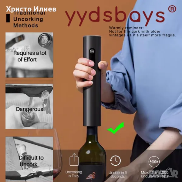 Електрическа отварачка за бутилки вино автоматичен тирбушон Подаръчен комплект 4 части