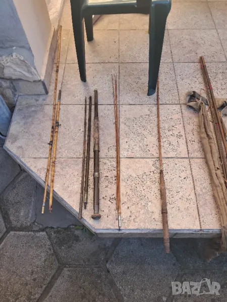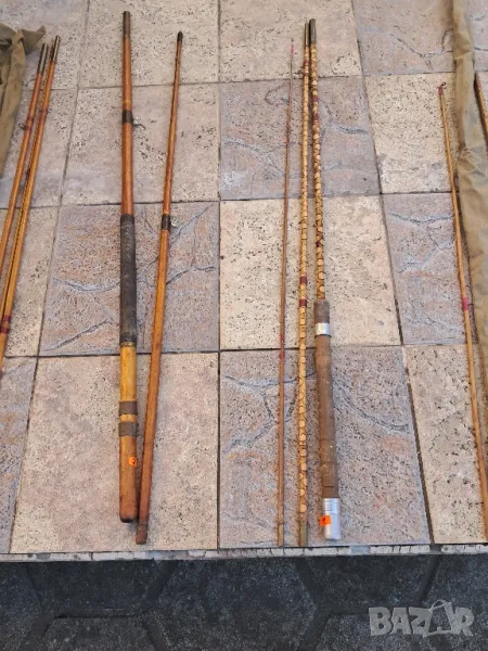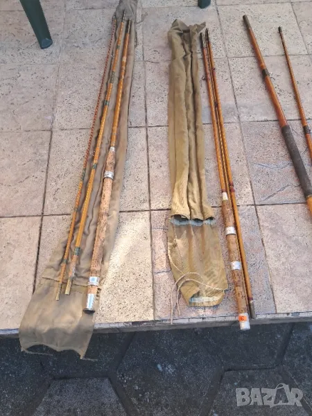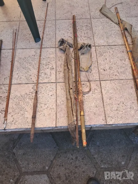 много стари мухарки и др. ,лепен бамбук ,дървени други риболовни пръти → Обява 48023546