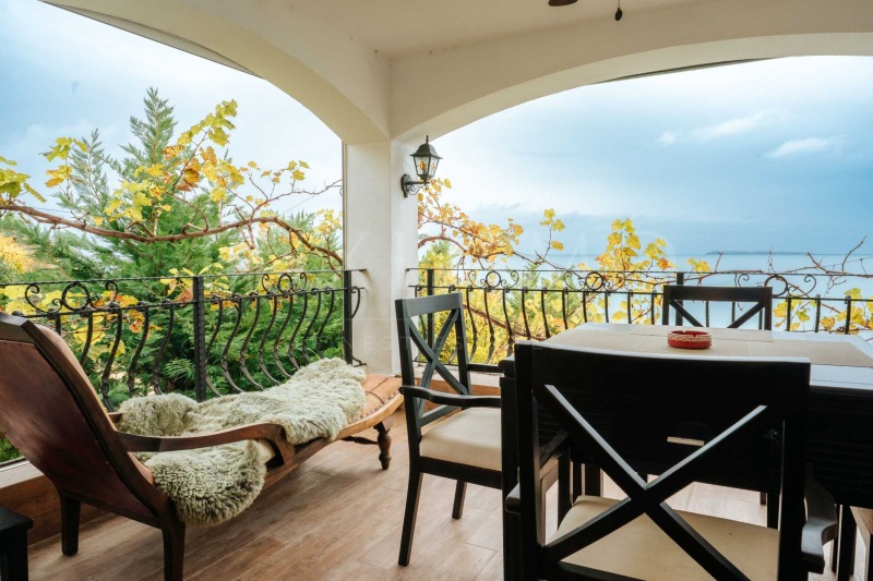 Имотът е разположен в най-тихата и отдалечена от басейните и ресторантите част на комплекса, което осигурява спокойствие и тишина, която се нарушава само от шума на морския прибой на вълните, разбиващи се в пясъчния плаж пред имота. Просторните тераси с панорамна морска гледка са майсторски озеленени с обграждащите ги лозови насаждения, които придават на имота усещане за собствена къща на брега на морето.