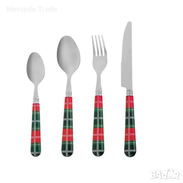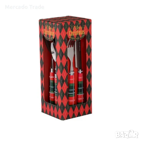 Коледен комплект прибори Mercado Trade, Червена карирана дръжка, 12бр. → Обява 48024762