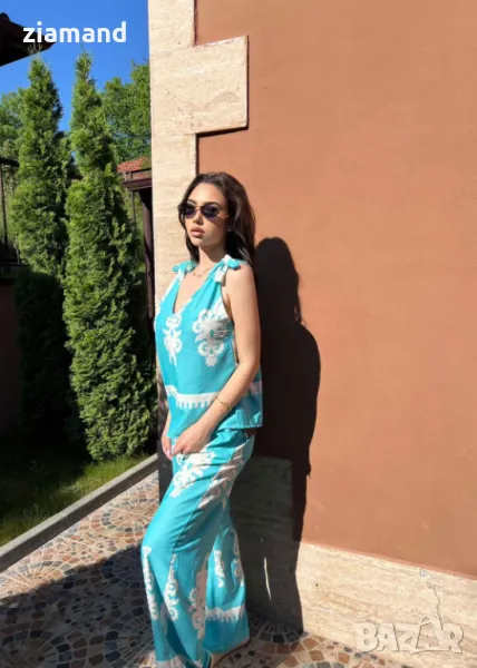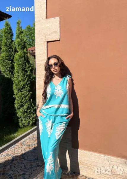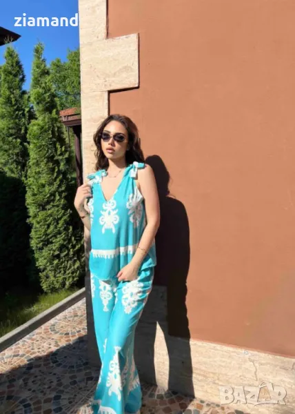 Свободен летен комплект от дълъг панталон и потник