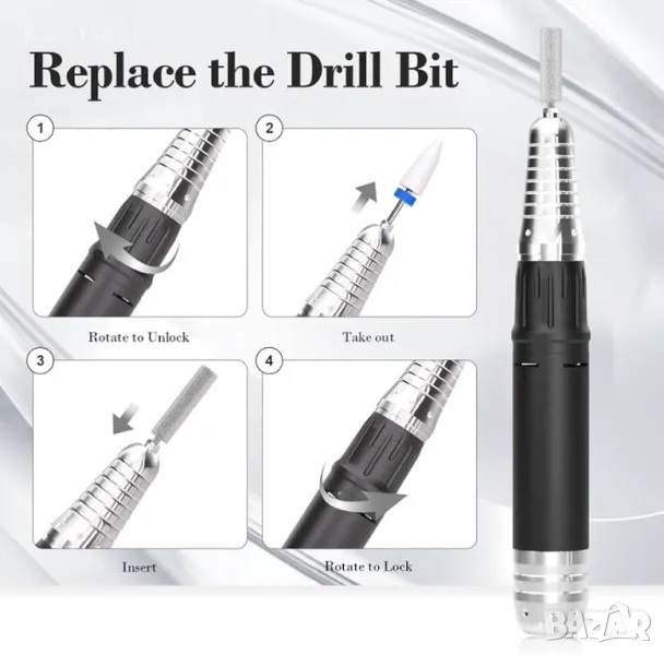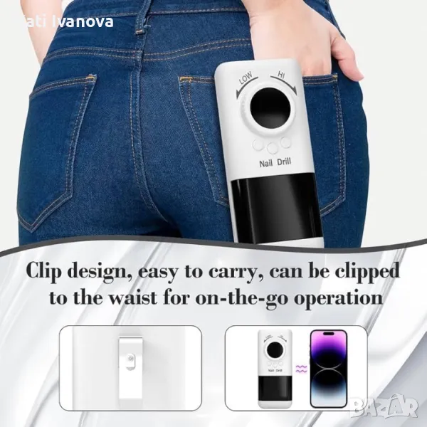 Компактна електрическа пила за нокти: Нашата електрическа пила разполага с вградено място за съхранение на свредла за често използвани свредла, като поддържа работното ви пространство подредено и ефективно, като същевременно осигурява лесен достъп и съхранение. Освен това електрическата бормашина за нокти efile е компактна и лека с преносима дизайн на щипка за колан, който можете да го закачите на колана си, талията. Преносимият дизайн го прави лесен за носене и пренасяне, идеален за движение или пътуване, можете да рисувате вашите нокти по всяко време и навсякъде