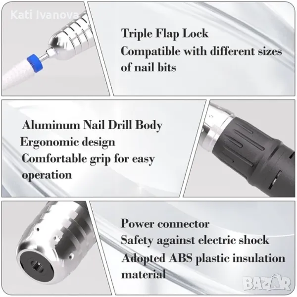 Професионална електрическа пила за нокти: Изпълнява маникюри и педикюри с лекота, подходящ за акрилни нокти и гел.