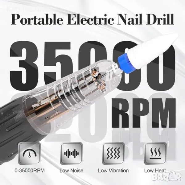 Професионална електрическа пила за нокти Retilio, преносима машина за нокти 35000 оборота