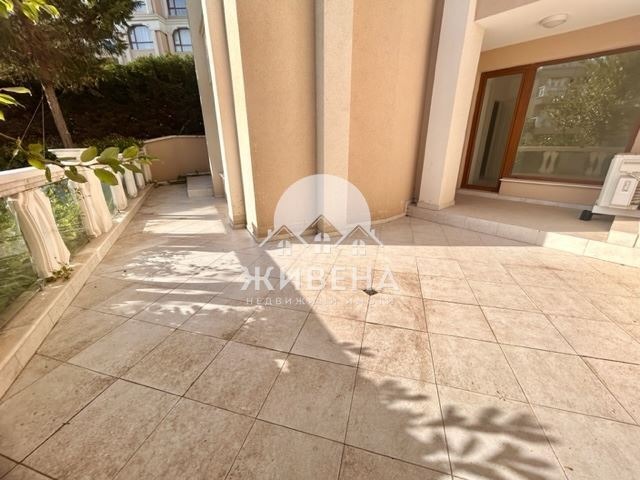 Агенция Живена предлага за продажба тристаен апартамент, до плаж Кабакум. Жилището е разположено на 1-ви етаж в луксозен затворен комплекс на първа линия море. Общата му площ е 141 кв.м, ЧЖП - 117 кв.м (с вкл. тераса 17 кв.м) и се състои от: коридор, дневна с оборудвана кухня, 2 спални, килер, баня с тоалетна и голяма открита тераса. Предлага се завършен До ключ , без мебели, с поставени климатици във всяка стая, оборудвана баня. Подходящ е, както за живеене, така и за инвестиция. Комплексът разполага със собствен плаж, рецепция, панорамен асансьор, ресторант, бар, детска площадка, модерен СПА център с минерална вода, фитнес, фризьорски салон, маникюр и педикюр, масажни кабинети, вътрешен басейн с джакузи, два външни басейна, подземен и наземен паркинг със свободно паркиране, красива територия с озеленен двор с достъп основно от собствениците на апартаменти в комплекса. Сигурността е решена с денонощна жива охрана и видеонаблюдение. Такса поддръжка е 13 евро на кв.м/ годишно. Наблизо има магазини и автобусна спирка.