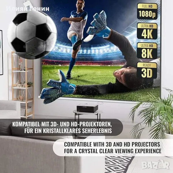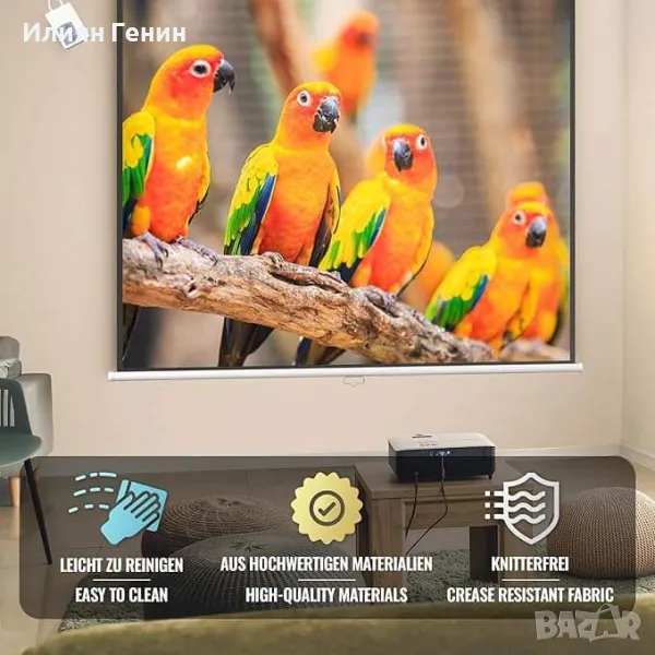 ⭐⭐⭐⭐⭐ ИЗДРЪЖЛИВ: Белият полиестер, използван за направата на прожекционния екран, го прави здрав и лесен за почистване