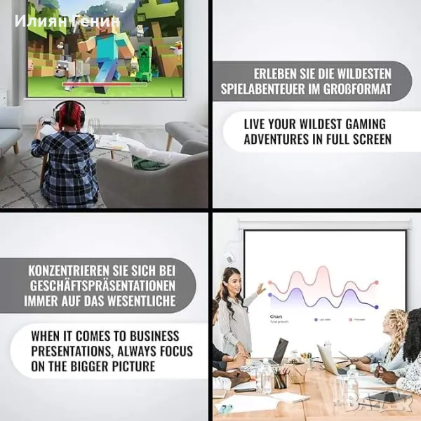 ⭐⭐⭐⭐⭐ С ПЕРСОНАЛИЗИРАНЕ: Този екран за домашно кино е съвместим с всички стандартни размери (1:1, 4:3, 16:9) и се регулира на височина.