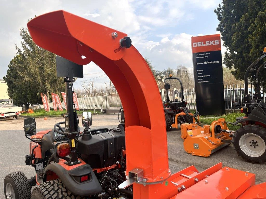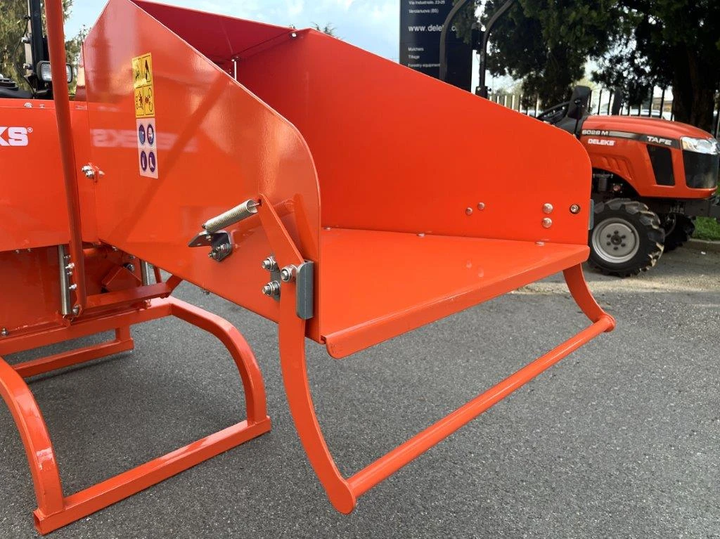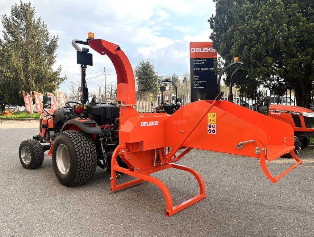 Навесна Дискова Дробилка за чипс марка Deleks Модел DK-1200SE ОПИСАНИЕ: Дробилката за дървесен чипс е предназначена за раздробяване на органични отпадъци например листа, клони, храсти, жив плет, дървета и др. с различна твърдост. Здравата конструкция е устойчива на механични повреди, дори при работа с максимално натоварване, и гарантира дълъг срок на експоатация с минимални разходи за обслужване. ХАРАКТЕРИСТИКА: Максимален диаметър на дървета и клони до 80-100 мм Навесен вариант за прикачване към задна навесна система Кат. 1 Производителност: 8-9 m3/h Задвижване от ВОМ на