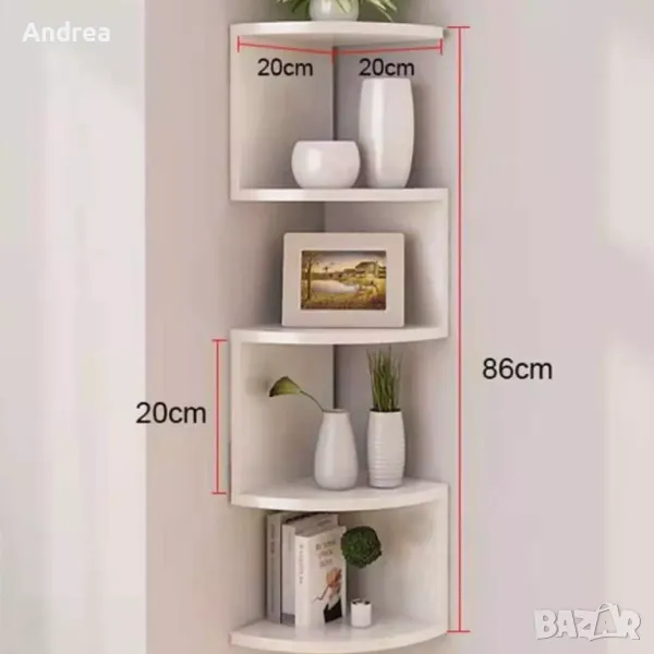 Ъгловата етажерка за съхранение е идеално решение за организиране на хола, спалнята, детската стая, офиса или кухнята.Форма й и извитите рафтове я правят подходящо допълнение към всеки интериор.Етажерката се почиства и поддържа изключително лесно.