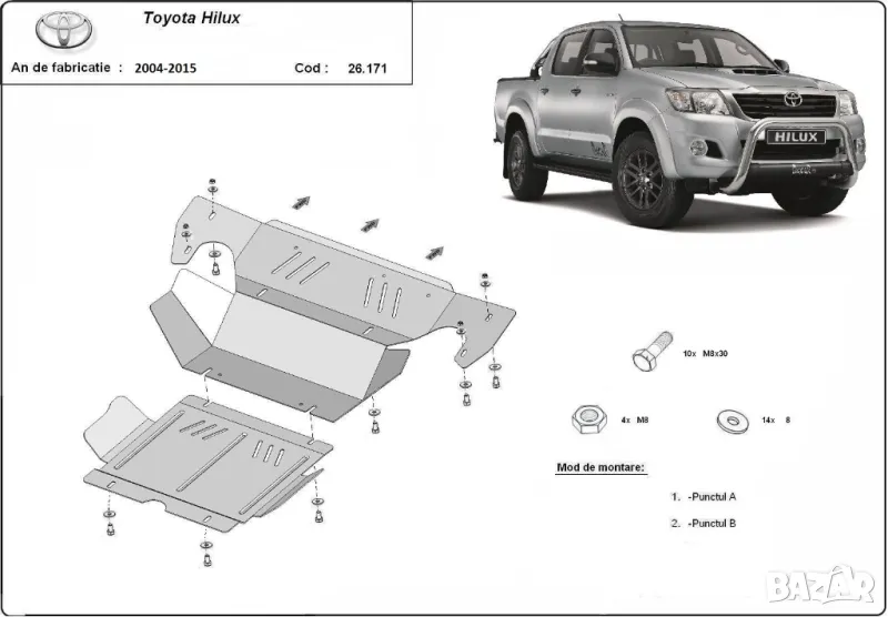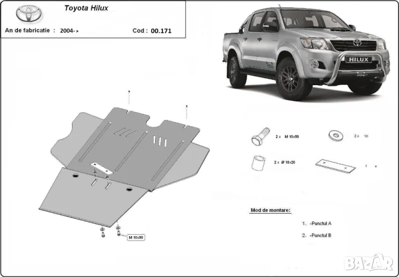 Метална кора TOYOTA HILUX VI 2004-2015 - под двигателскоростна кутия,диференциал,резервоар