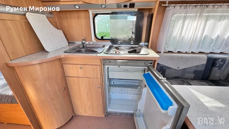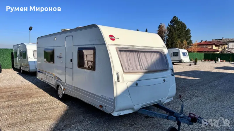 Продавам четири местна каравана Бюрстнер Вентана, нов внос, произведена на 08.02.2005 година с дължина 6.26 метра без теглича, тежаща празна 1225 килограма и пълна 1600 килограма.