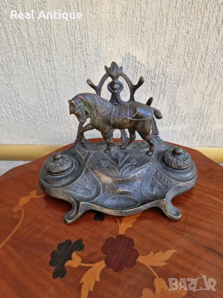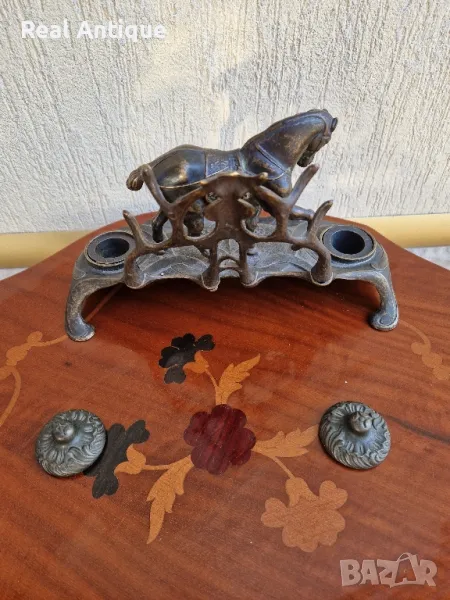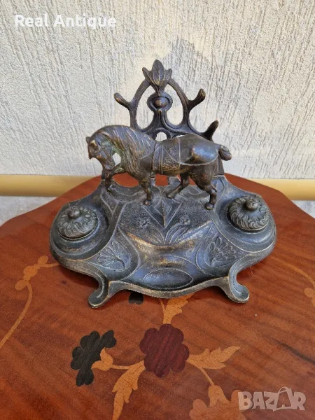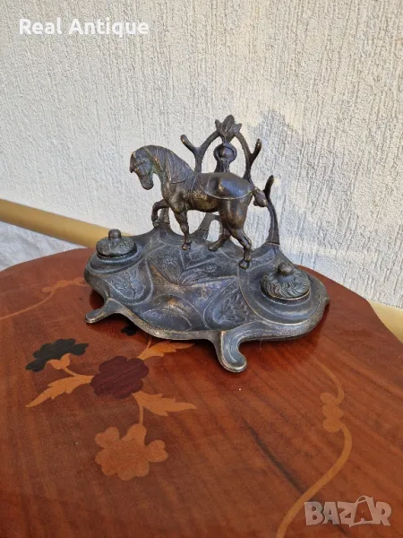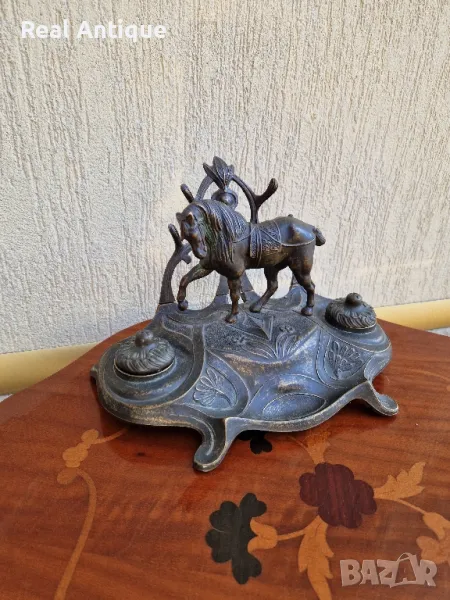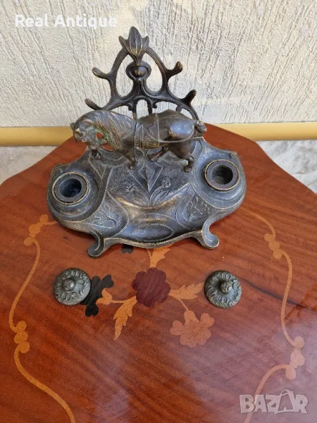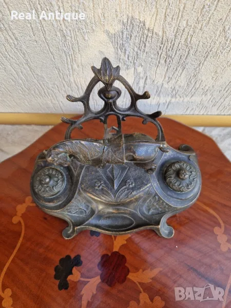 Продавам уникална много красива антикварна мастилница от стар бронз в много добро състояние без забележки с наличните легенчета. Дължина 26 см височина 18 см и ширина 17 см. Прекрасно допълнение към интериора на Вашия дом офис вила. Подходяща и за подарък. Работя с всички куриери. Отговарям бързо.