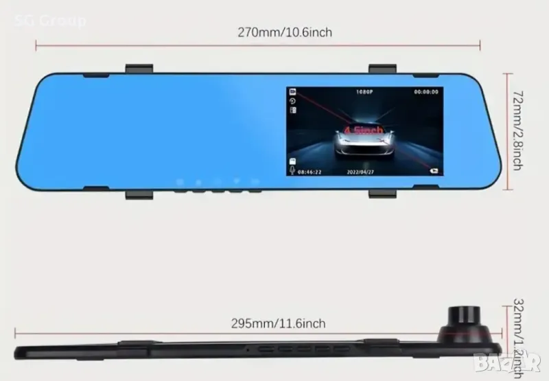 Камера видео регистратор за кола тип огледало в